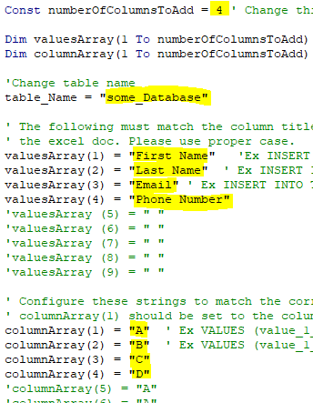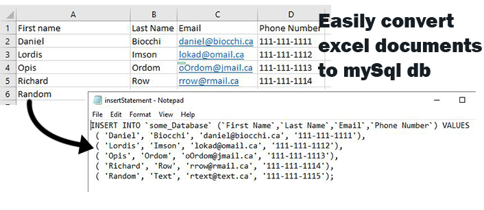 Purpose of script, convert a excel doc to an insert statement to be inputted into a mySQL database <<<